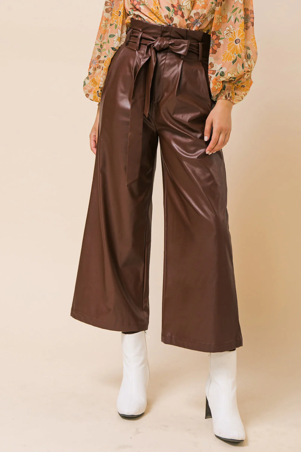 The SHINING BRILLIANCE LEATHER WIDE LEG PANTS offer a tailored look with contemporary appeal. Crafted from high-quality faux leather, these pants feature a paperbag waist that is paired with a matching belt. Enjoy a professional style with a hint of glamour.