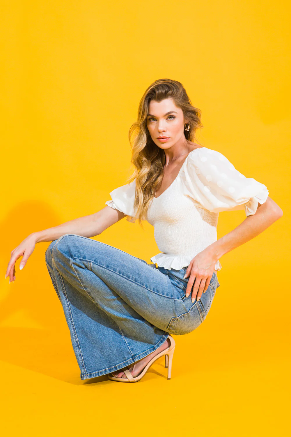 The FRENCH COUNTRYSIDE TOP is the perfect blend of contemporary style and classic elegance. Featuring a V neckline and contrasting jacquard organza sleeve, it’s tailored with a smocked bodice and finished with a flattering peplum silhouette, creating an effortlessly chic look.